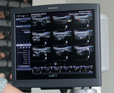 In dem Fachgebiet der Inneren Medizin werden vor allem die Schilddrüse und die Leber mit diesem Verfahren untersucht.